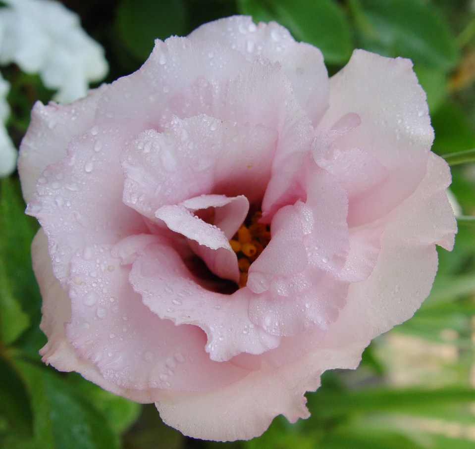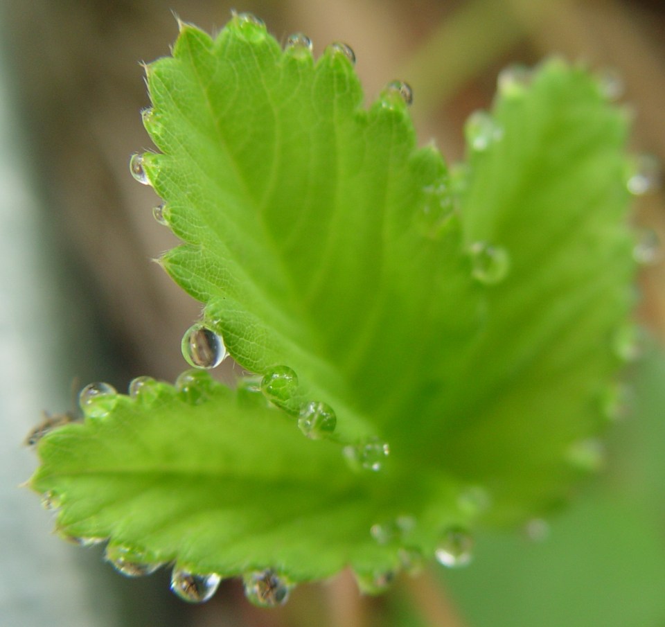 Her dew drops glisten, shining bright.